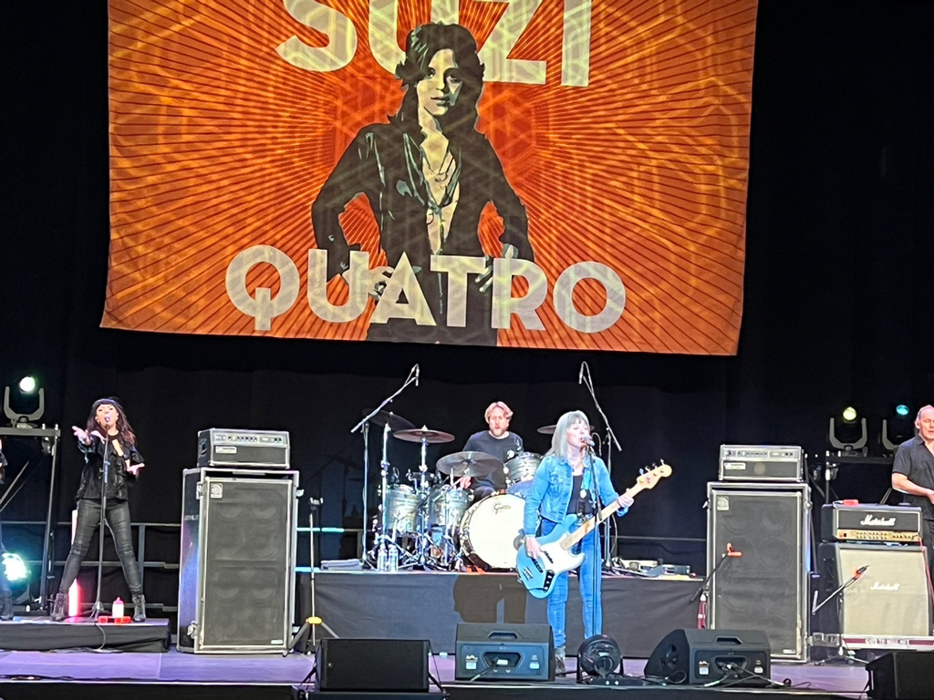 Zwar blieben einige Plätze frei, doch die Stimmung war hervorragend. Quatro, mittlerweile 75 Jahre alt, stand mit einer achtköpfigen Band inklusive Bläsersektion auf der Bühne – energiegeladen, laut, kompromisslos. Neben Coverversionen von Neil Young („Rockin’ in the Free World“) und Creedence Clearwater Revival („Bad Moon Rising“) gab es reichlich Material aus ihrer eigenen Karriere.
