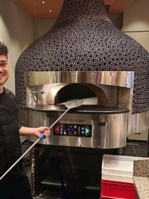 Ruhiger geht’s in der Chillzone zu, in die sich Gäste und Besucher samt Laptop zum mobilen Arbeiten zurückziehen können. „Davon wird rege Gebrauch gemacht“, freuen sich Marie-Claire Rusche und ihr Team mit 50 Mitarbeitenden (das Housekeeping ist ausgelagert). Im gleichfalls für jeden zugänglichen Restaurant ist mit Chicken Wings, Burgern, Pasta oder Flammkuchen täglich von 12 bis 22 Uhr für das leibliche Wohl gesorgt. Heiß begehrt ist die Pizza, die Eddy aus Italien nach neapolitanischer Art mit hausgemachtem Teig im Steinofen backt. Die schmecken auch den Fußballprofis der 1. und 2. Liga, die mit ihren Teams vor Auswärtsspielen im Revier regelmäßig im Moxy absteigen. Bisheriger Höhepunkt: Die Stippvisite der englischen Nationalmannschaft mit Harry Kane & Co. während der Fußball-EM im Sommer 2024.